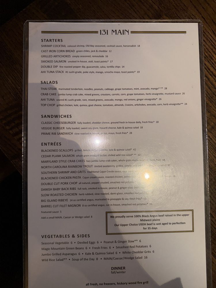 Highlighted by standout dishes such as succulent filets and a cornbread appetizer that's gained quite the reputation, 131 MAIN does not disappoint in its quest to provide exceptional flavors. Diners rave about the impeccable service and the attentiveness of the staff, creating a warm and inviting atmosphere.